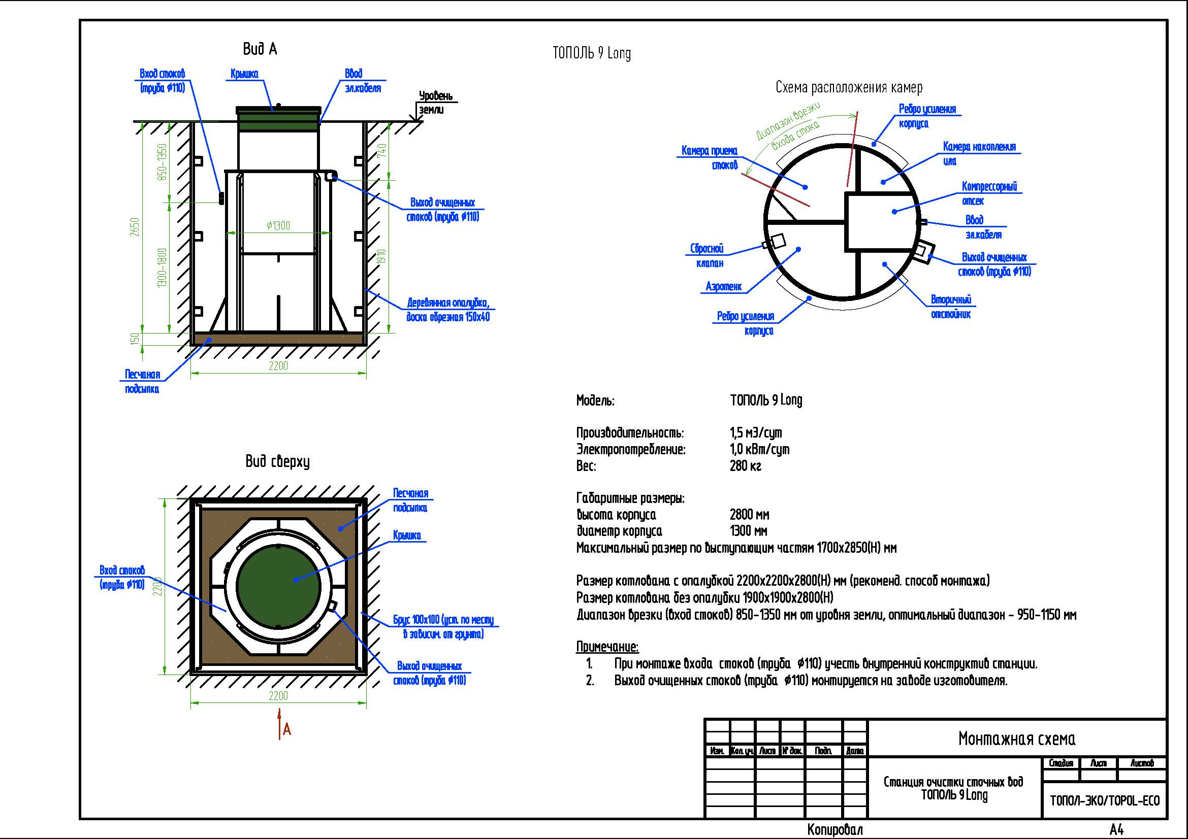 Станция ТОПОЛЬ 9 Плюс предназначена для биологической очистки хозяйственно-бытовых сточных вод, поступающих от отдельного коттеджа или группы коттеджей, в условиях отсутствия централизованной системы канализации.